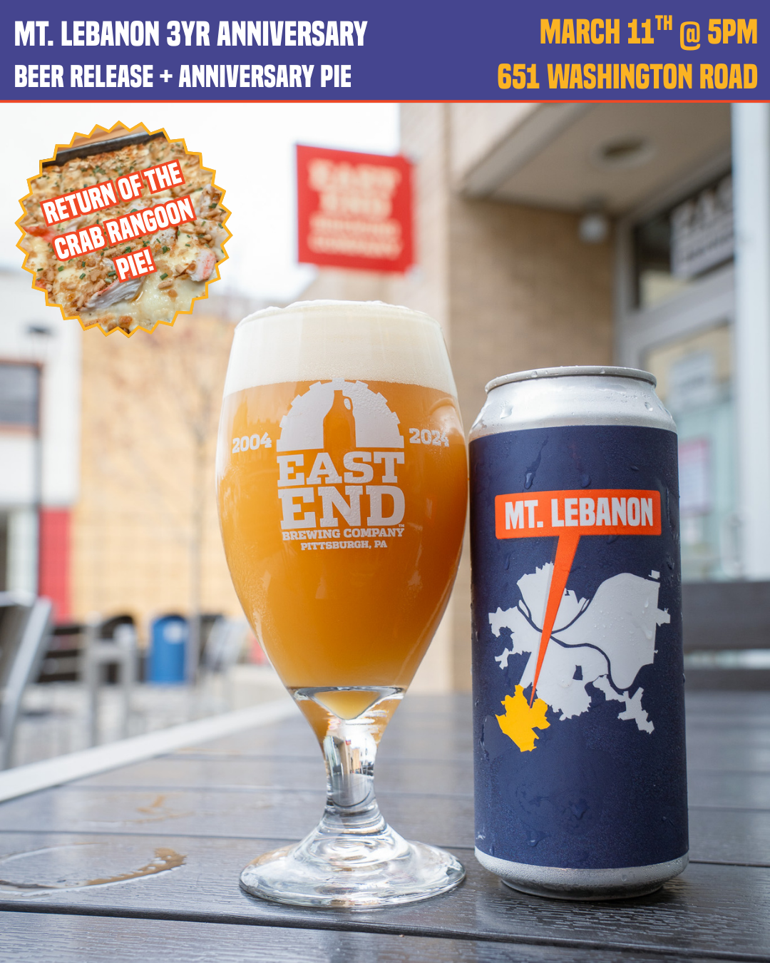 We’re celebrating our third anniversary in Mount Lebanon with a newly brewed, fresh batch, re-release of last year’s namesake beer… you guessed it - Mount Lebanon, plus a special Anniversary Pizza!